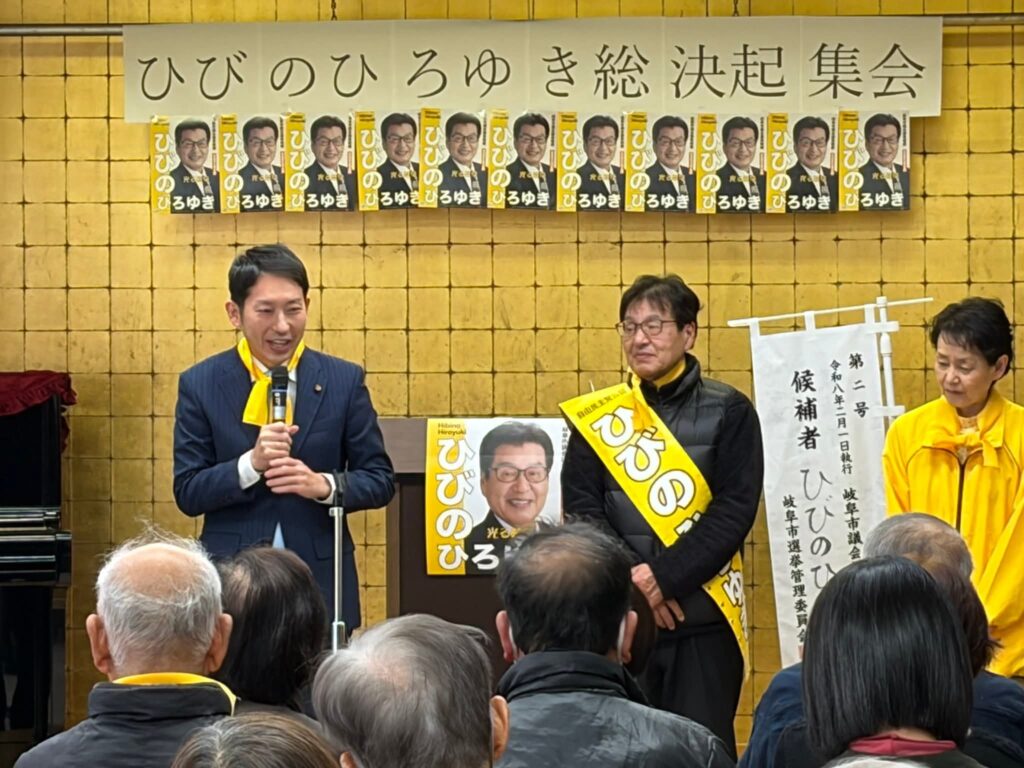 岐阜市議会議員補欠選挙に出馬されている日比野ひろゆき候補の総決起大会に出席