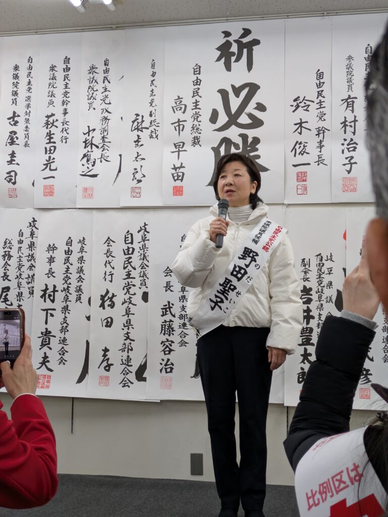 野田聖子 出陣式。いよいよ衆院選スタート!出陣式での野田候補の力強い言葉を聞きました。「誰もが主役になれる社会」を、この岐阜から。宜しくお願い致します。🗳️ #衆院選2026 #岐阜1区 #出陣式 ブログ