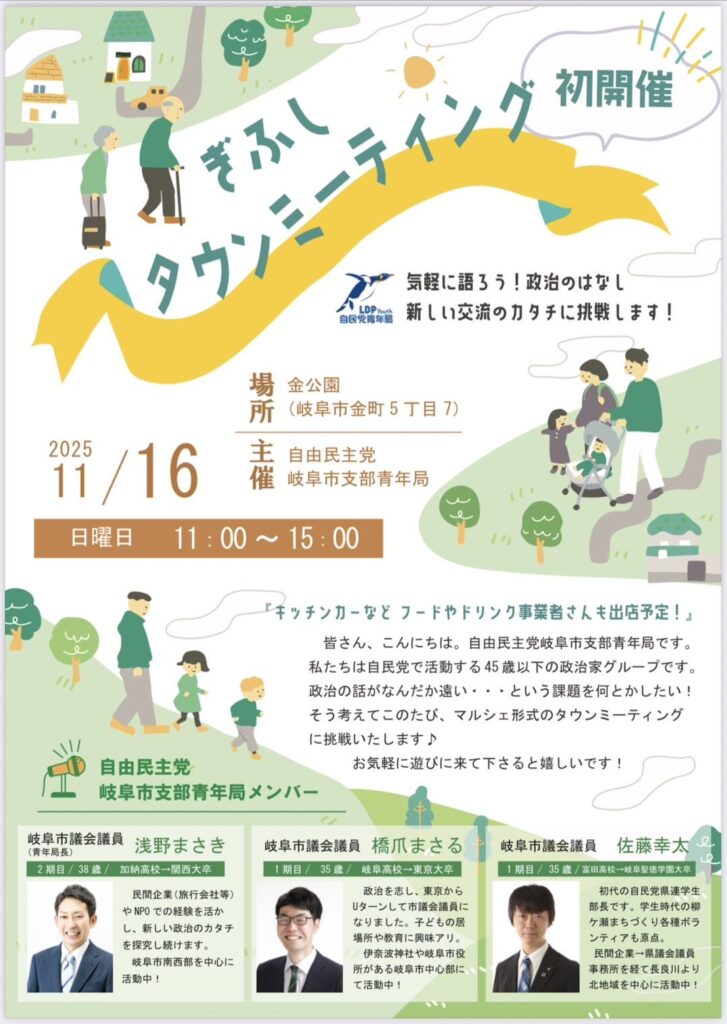 #岐阜市 #タウンミーティング #自由民主党 #自民党青年局 #マルシェ #政治をもっと身近に #週末イベント #金公園