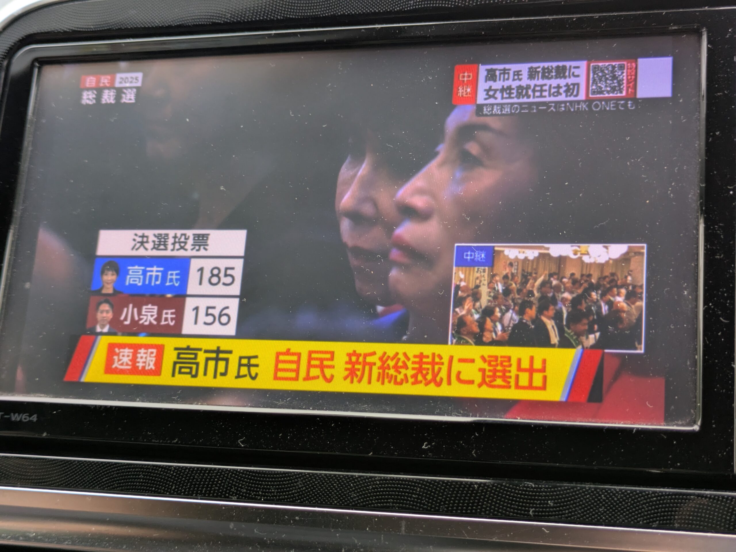 国会議員票と党員・党友票の開票の結果、激戦を経て、高市早苗候補と小泉進次郎候補が決選投票に進出。その決選投票の結果、高市早苗氏が新総裁に選出されました。