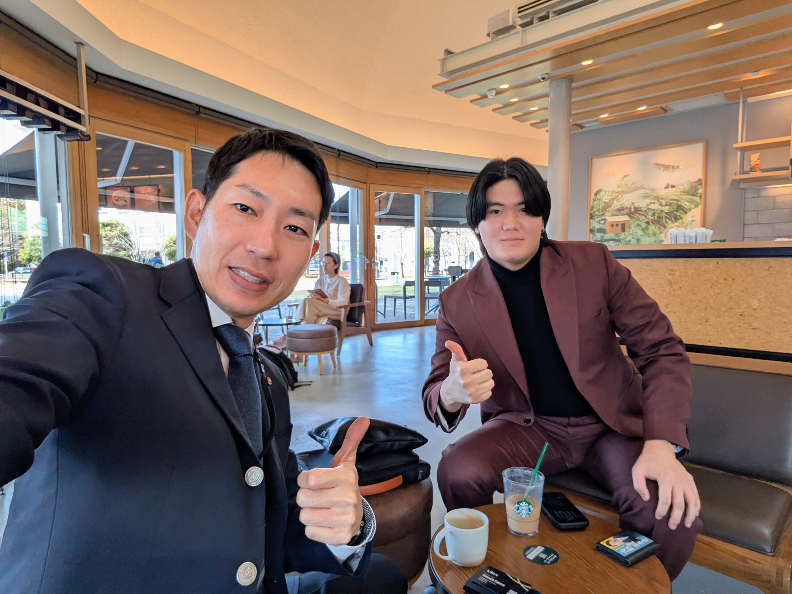 ぎふメディアコスモスのスターバックスにてN高在学中の高校生起業家神谷さんと意見交換