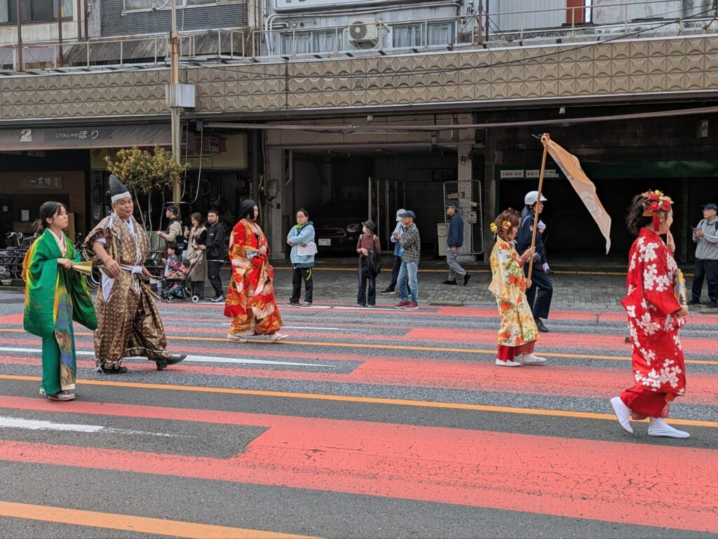 武者行列・鼓笛隊の迫力!信長公をしのぶ武者行列や、徹明さくら小学校の子どもたちの元気いっぱいの鼓笛隊が通りを華やかに彩り、沿道の観客を魅了していました。