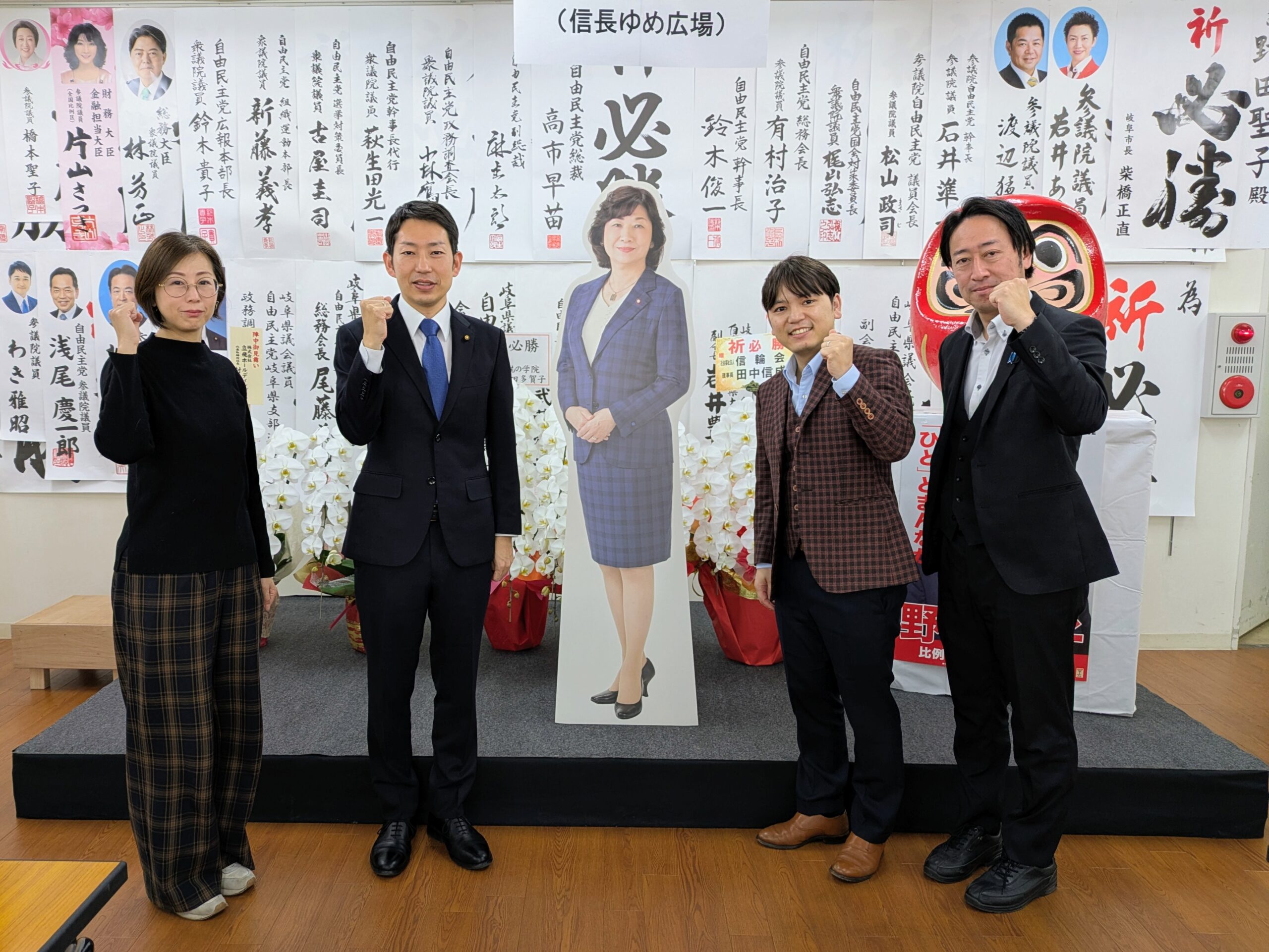 現場では、長屋こうせい岐阜県議会議員ともお会いし、共に激励の意を込めて記念撮影。