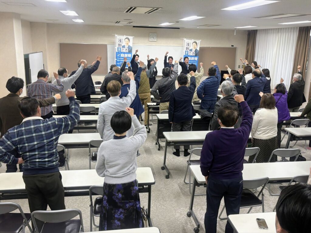 また、美濃市の山口育男市議、瑞穂市の宮川しょうけん市議にもご参加頂き、最後は市川先輩のガンバローで締めました。