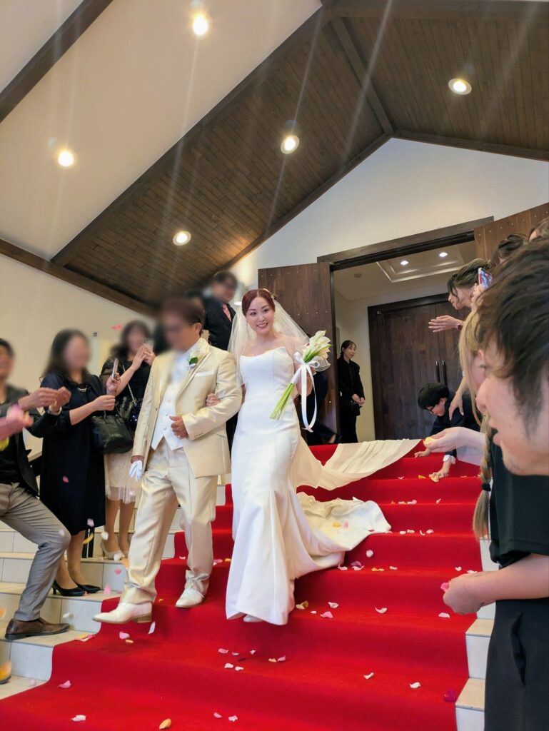 美容業界で活躍する彼女の姿にはいつも刺激をいただいていますが、今日の花嫁姿は一段と輝いていて、同級生一同とても嬉しい気持ちになりました。