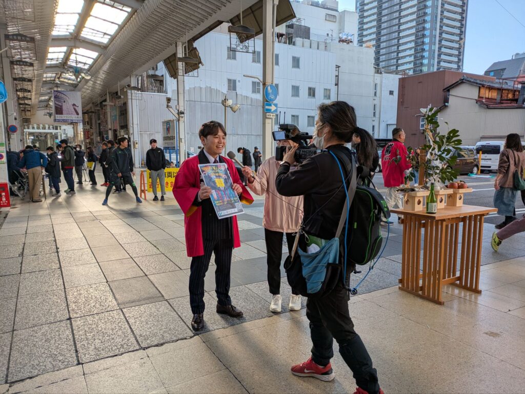 柳ケ瀬商店街で開催された柳ケ瀬福人レースにて激励挨拶福男を決める